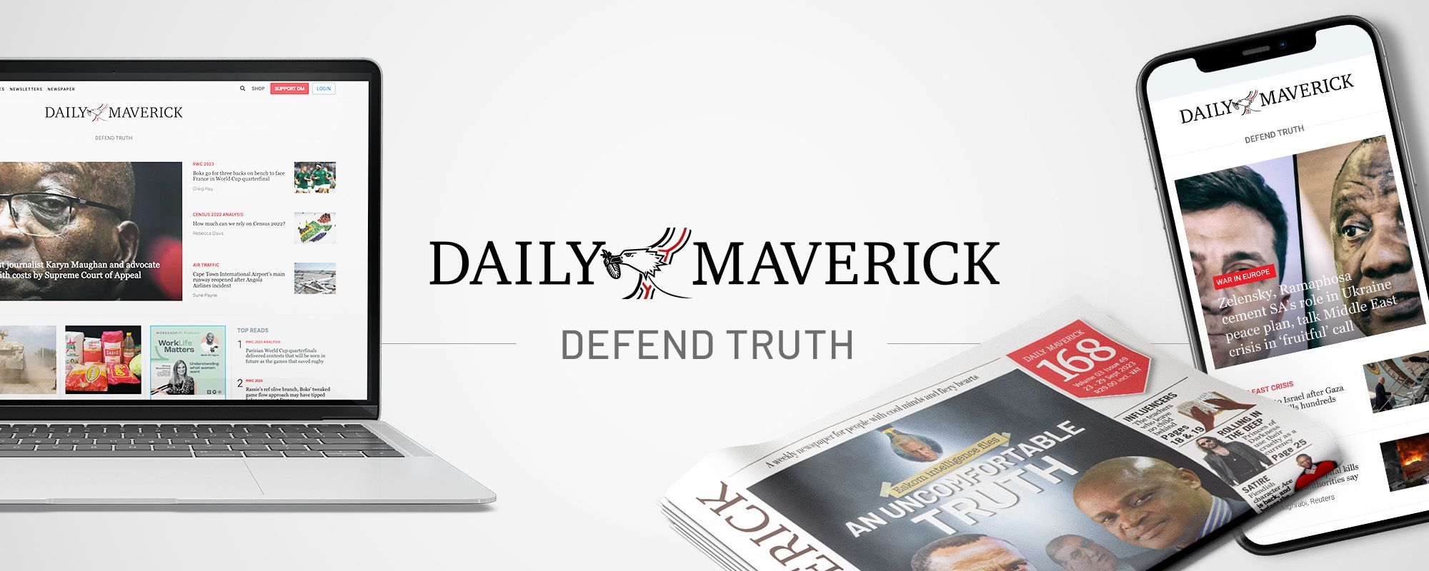 growing. While others hit the eject button on print, we doubled down, launching a newspaper in 2020 when everyone else was downsizing. Why? Because our readers wanted it. 21 Feb 2025 Read more It’s that time of the year again! For the fourth year in a row, Daily Maverick is calling on their readers to join forces with its newsroom in choosing the winners of the highly anticipated People of the Year. 4 Dec 2024 Read more DM168, Daily Maverick’s weekend newspaper, for curious minds and fiery hearts, is proud to announce another remarkable milestone on its growth journey. With a 10.7% year-on-year increase in readership, the publication continues to prove the value of quality journalism in print. 22 Nov 2024 Read more Daily Maverick is thrilled to announce a unique collaboration with UCT Summer School, a renowned forum for open, thought-provoking discussion, celebrating over seven decades of bringing together some of the brightest minds in education, culture, and current affairs. 15 Nov 2024 Read more More news...Contact Daily Maverickwww.dailymaverick.co.za |